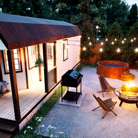 Our outdoor community kitchen invites you to share meals and conversations, while the serene yoga space offers a peaceful setting for mindfulness and movement. Both are designed to foster connection, relaxation, and a sense of well-being during your stay.